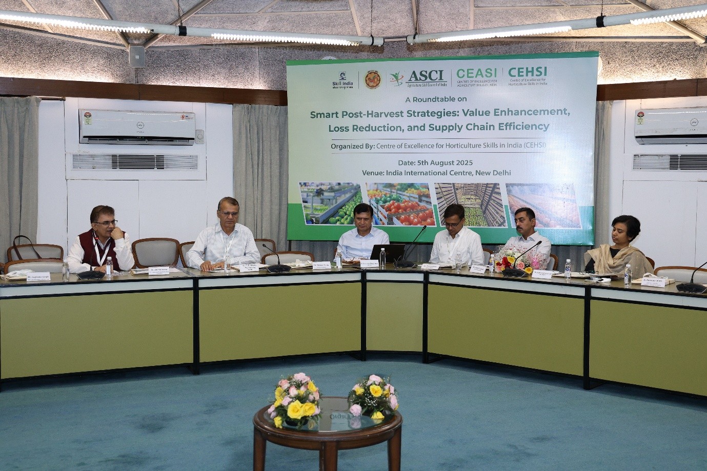Centre of Excellence for Horticulture Skills in India (CEHSI) hosted a one-day roundtable on “Smart Post-Harvest Strategies” on 5th August 2025 at the India International Centre, New Delhi, sponsored by Country Delight with NIFTEM and Maharana Pratap Horticulture University (MHU) as Knowledge Partners. The event was graced by Chief Guest Dr. S.K. Malhotra, Vice Chancellor, MHU, and distinguished guests Dr. Naveen Patle, Additional Commissioner, Ministry of Agriculture & Farmers Welfare; Dr. Tanweer Alam, Additional Director, Indian Institute of Packaging; Dr. Joginder Singh, JD cum Principal, HTI; Dr. Satender Singh Arya, CEO, ASCI; and Dr. Sai Krishna, CEO, NSFI. Participants from renowned organizations discussed reducing post-harvest losses, reducing post-harvest losses, strengthening cold chain infrastructure and promoting sustainable packaging through skill development and technology.